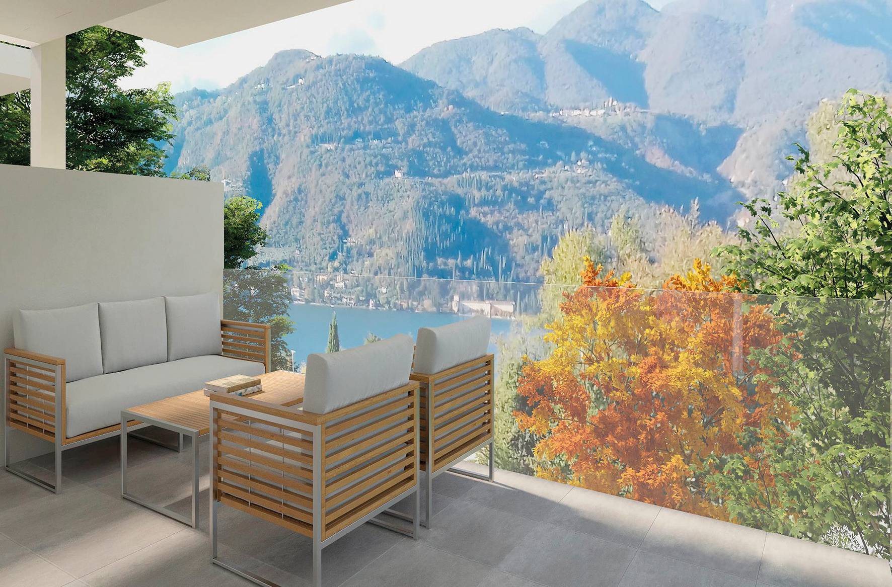 Al piano primo le ampie terrazze con i loro parapetti in vetro offrono un panorama unico.